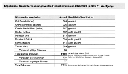 Des Weiteren konnten wir unseren Sitz in der Finanzkommission erfolgreich verteidigen. Mario Tanner schaffte den Sprung in die Fiko im ersten Wahlgang. Bettina Beutler erreichte zudem ein super Ergebnis. Auch hier gratulieren wir allen wiedergewählten.